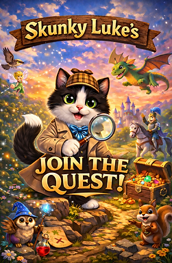 Welcome to the world of Mr. Skunky Luke, a charming tuxedo cat that has captured the hearts of many. Explore our worlds to see delightful adventures and moments. Each world tells a story of his playful personality and loving nature. Each world also helps you learn while on amazing adventures.